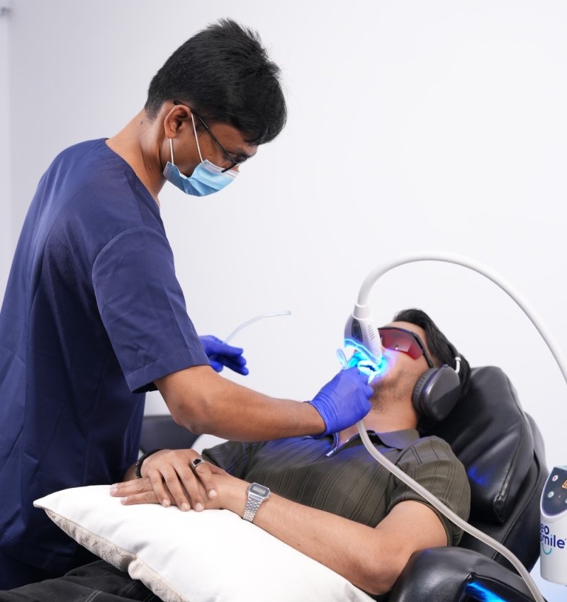 Safe, professional in-clinic whitening designed to visibly brighten your smile in a single session.